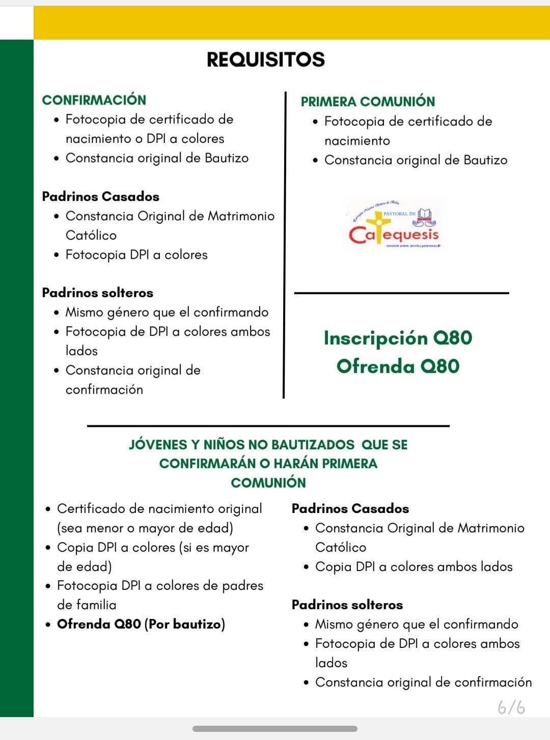 El grupo de confirmandos se comienza a preparar en el mes de febrero de cada año, las inscripciones se realizan en el mes de enero en los horarios de Misas de los días domingo. El grupo realiza su confirmación en el mes de octubre o noviembre.